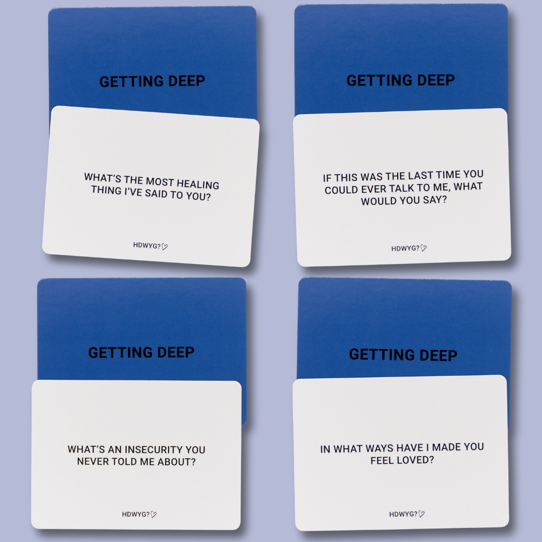 99 prompts across 3 levels, carefully chosen to have more open-hearted conversations that deepen love.