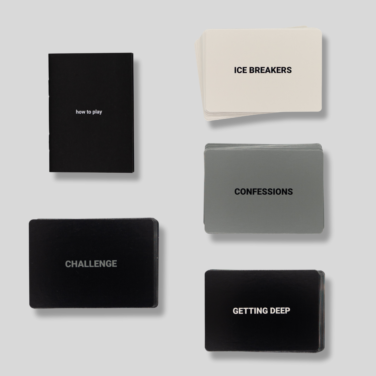 - 90 unique question cards that turn small talk into "I've never told anyone this" — so you get closer every single time you play